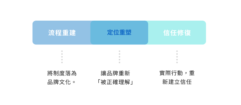 - 危機處理後續:品牌重置工程,定位重塑、流程重建及信任修復